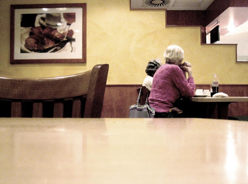Um sieben Uhr macht der Penny auf, um acht öffnen dann der real, die Bäcker und die ersten Imbissstände. Die Putzfrauen des Centers gehen zu "Kosta's" im "Schlemmerparadies", weil man hier vormittags für einen Becher Kaffee nur 99 Cent bezahlt. In Steineckes Heidebrot Backstube weiter vorne kosten ein "Pott" Kaffee und zwei halbe Brötchen mit Hackepeter und Zwiebeln 2,30 Euro. Hier sitzen die Rentner, rauchen Zigaretten und erzählen Lebensgeschichten, die wie Märchen aus einer anderen Zeit klingen: "37 Jahre bei Siemens" oder "42 Jahre in der Stahlindustrie", das sind die Rahmendaten ihrer Erwerbsbiografien. Selbst M., der sein Leben lang selbständig war, "will nicht klagen". Er besitzt heute unter anderem vier Häuser, eines davon in Spanien. "Es ist nicht schlecht gelaufen."