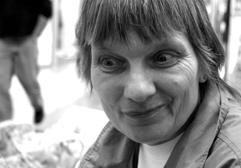 Zurzeit präsentieren sich hier einige Museen - das interessiert sie. "Ich lerne gerne etwas." Zu Hause sieht sie sich im Fernsehen darum Dokumentationen und Tierfilme an, außerdem guckt sie "Visite", "das ist ein Gesundheitsheitsmagazin." Ein Telefon hat sie nicht, ihre Tochter, die in Frankreich lebt, ruft sie manchmal von einer Zelle aus an. Frau Schmidt ist geschieden, und in ihrer Wohnung, sagt sie, sieht es "wie bei Studenten" aus: "Ein paar Matratzen als Sofa." Einrichtungsgegenstände sind das einzige, wofür sie gerne etwas mehr Geld hätte: "Im Dänischen Bettenhaus gibt es oft interessante Angebote."